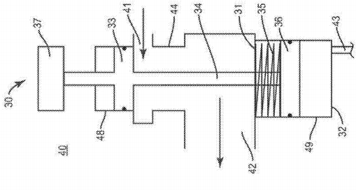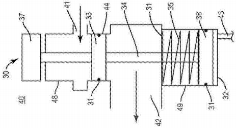 气流推力克服偏置力,推动轴移至第二位置(图3B):