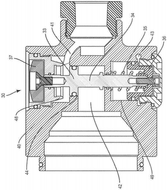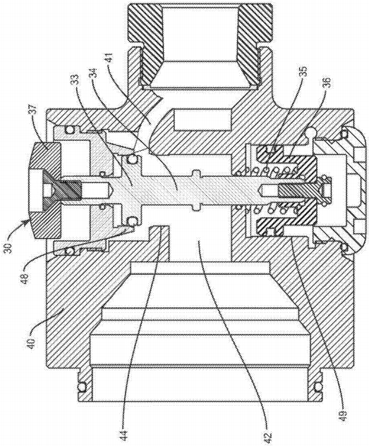 按压手动按钮(图5),轻微位移破坏第一活塞与孔的密封。